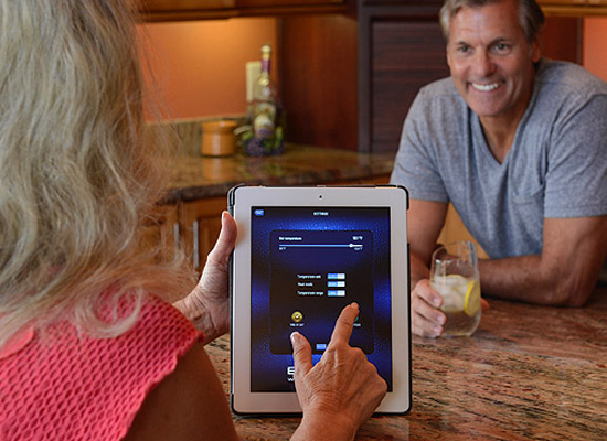 Dispositivos inteligentes para un spa inteligente. Podrás establecer el estado de ánimo antes de entrar en el spa, con la iluminación adecuada, la temperatura del agua óptima, y las bombas de masaje en funcionamiento desde tu smartphone o tableta.