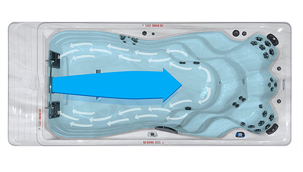 Esta revolucionaria tecnología suministra una corriente profunda y amplia del flujo de agua, prácticamente sin turbulencias en comparación con spas de natación de hidromasaje estándar de la industria.
