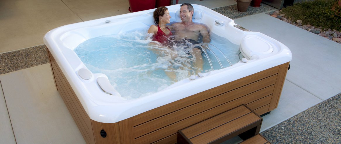 Escalones de polímero. Los escalones ligeros y duraderos de polímero proporcionan un punto de entrada estable al spa y se pueden reciclar al final de su vida útil.