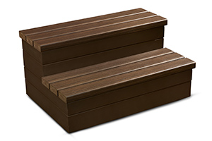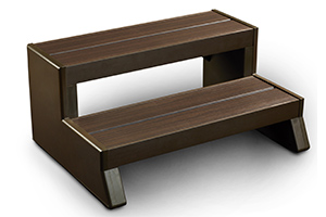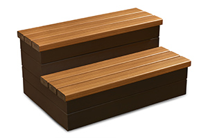 Escalones Everwood. .Fabricados con los mismos polímeros rígidos que el revestimiento del spa, los escalones Everwood® tienen un diseño innovador y un maravilloso aspecto. Requieren de muy poco mantenimiento.